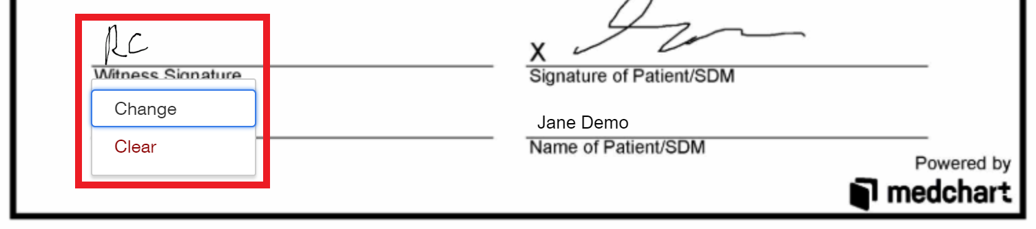 5. Click on your signature to see the options to Change your signature or Clear it from the line. Click Change.