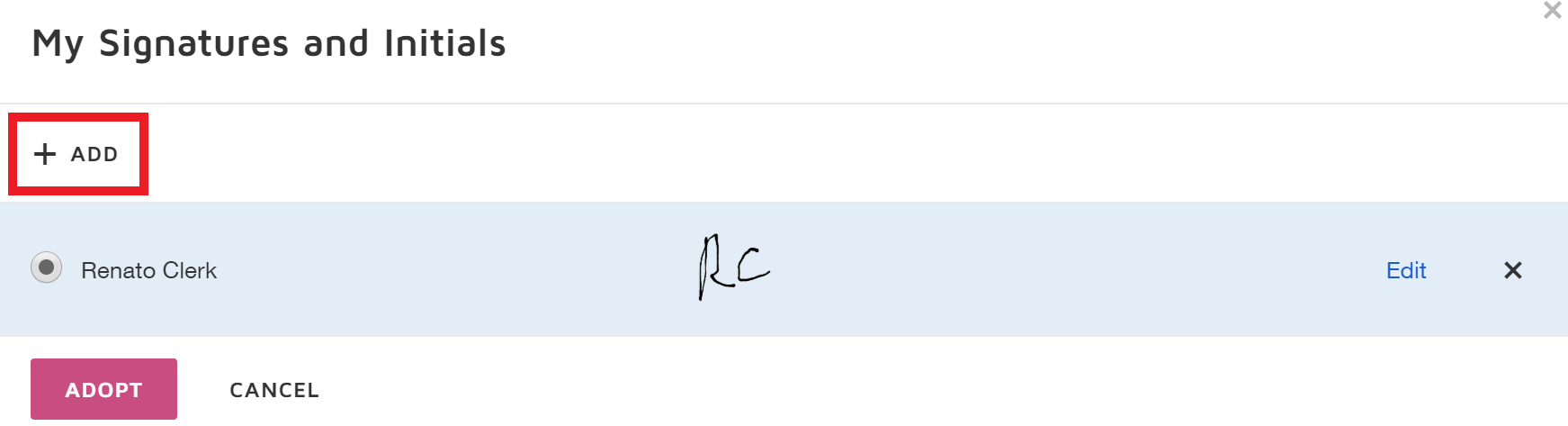 6. Click Add to create a new signature.