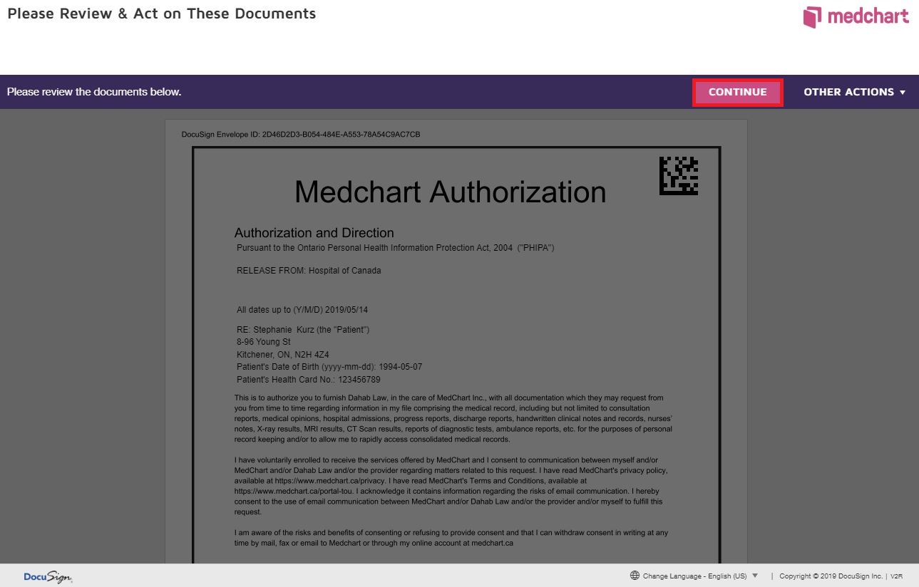 9. Your new signature will be applied to the authorization.
